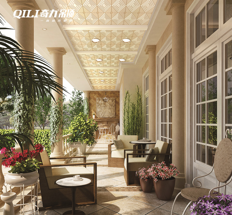 陽臺時常會晾曬衣服,因而比較潮濕,鋁扣板集成吊頂的防潮性能要比木板和PVC強。鋁扣板使用時間長,不易變形,易清洗,基本無老化現象。因此,鋁扣板具有抗生銹,抗腐蝕,抗老化的特征,并且裝修效果也上檔次,這就是我們奇力倡導的“質美雙全”。